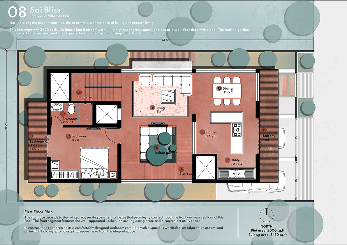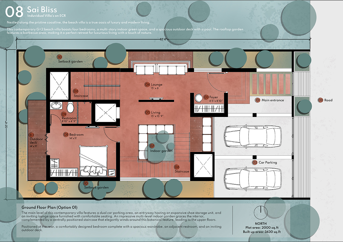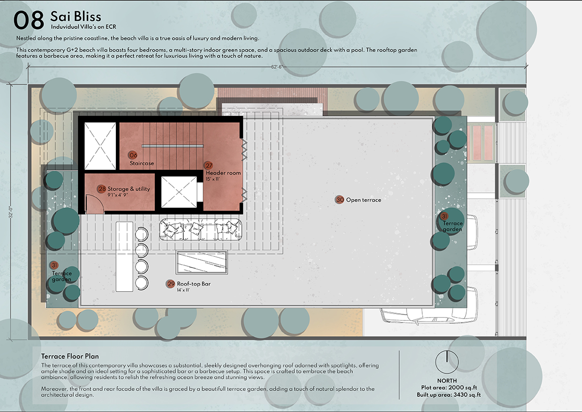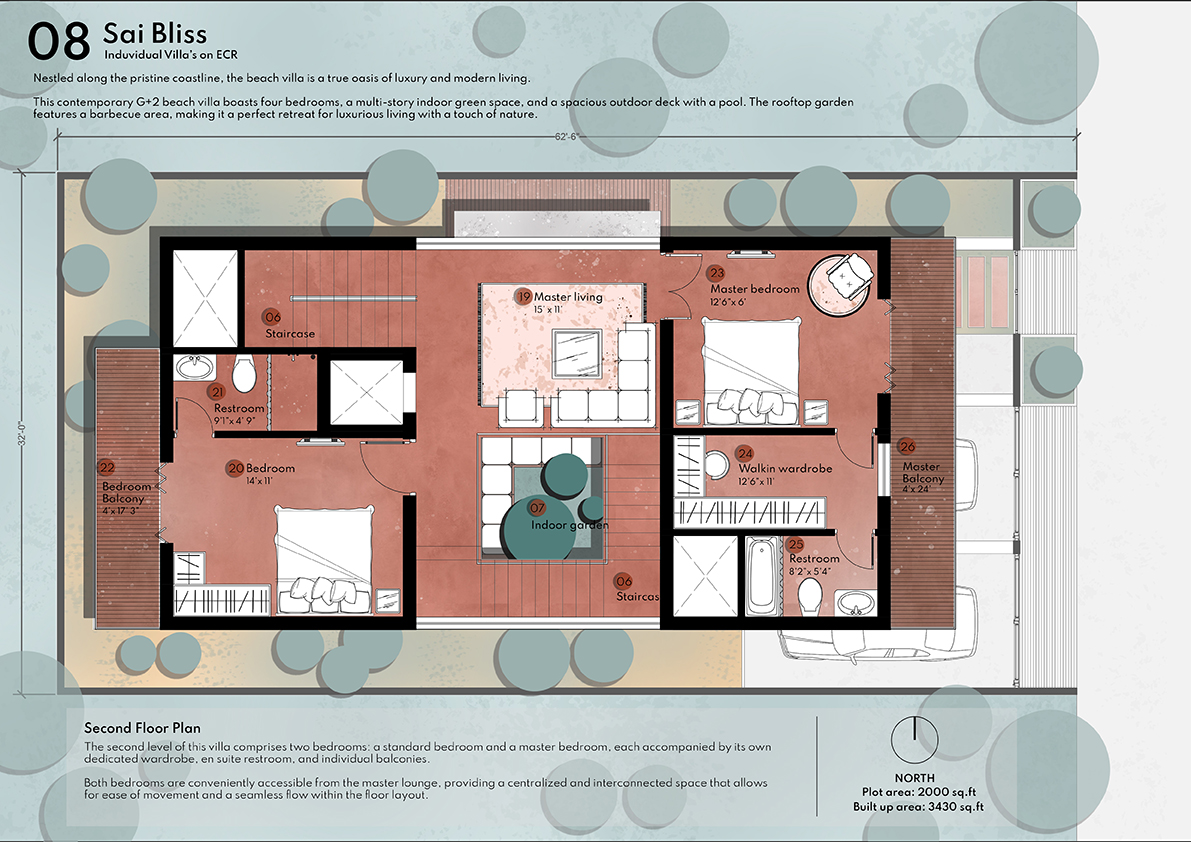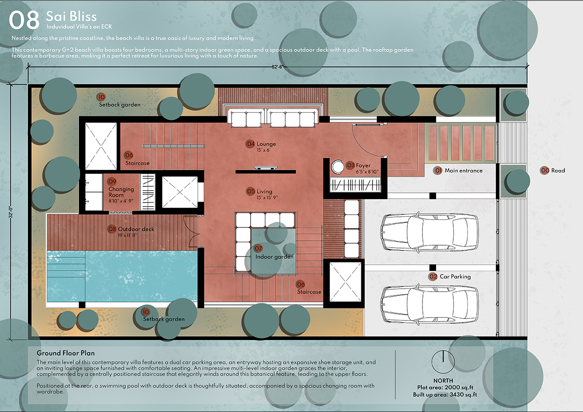 Sai Bliss is one blissful property located in the serene coastal area along the posh ECR Road. Developed by Kotak Real Estate these are exquisite villas in Iyyappanthangal. Located in a clean and green locality that enjoys proximity to the beach these homes are an epitome of luxury. In total, there are 6 villa units for sale in this premium gated community and they are all opulently configured. All the individual houses here are configured as 4 BHK units and their unit size extends 3904 Sq.Ft. Additionally, these villas come planned with covered car parks, private terraces, well-planned balconies, and so on. Most importantly these villas are securely planned inside a gated community with CCTV camera surveillance.